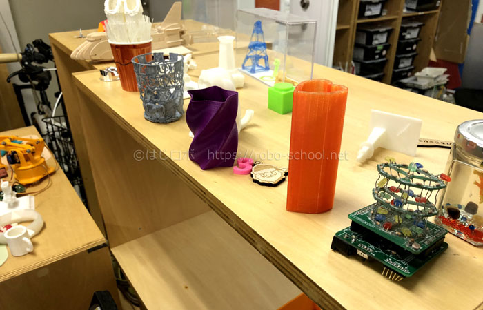 教室には生徒さんが3Dプリンターで作った作品がたくさん並べられていました