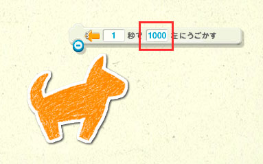 次は、イヌを一気に「1000(歩)」動かしてみましょう。