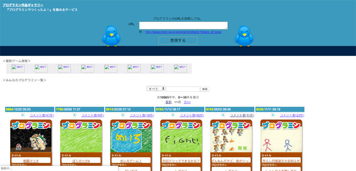 ただし、プログラミンの場合は知り合いから直接URLを教えてもらうしか、他の作品を見る方法がないので、そういった場合にはこちらのサイトが役に立つかもしれません。
